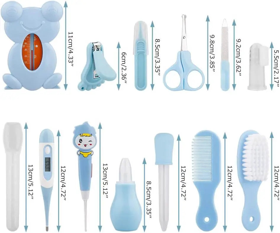 - Kit Includes: Soft hairbrush, comb, nail clipper, nail file, thermometer, baby bath thermometer, safety scissors, and more.