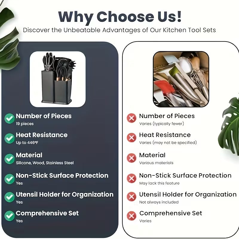 Transform your kitchen into a culinary powerhouse with this comprehensive 19-piece cookware and utensil collection. From non-stick pots and pans to premium knives, scissors, tongs, whisk, measuring spoon, and cutting board, every essential tool is included for seamless meal preparation. Whether you're baking, frying, or boiling, these heavy-duty kitchen utensils deliver professional-grade performance for everyday cooking. This all-in-one solution eliminates the need for multiple purchases, saving you time and money while equipping your kitchen with reliable, durable tools that handle any culinary task with ease.