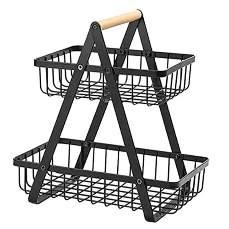 - Convenient 2 Tier Baskets: Featuring two tiered baskets with a convenient carry handle, this fruit stand not only provides a stylish display but also ensures easy access to your favorite fruits.