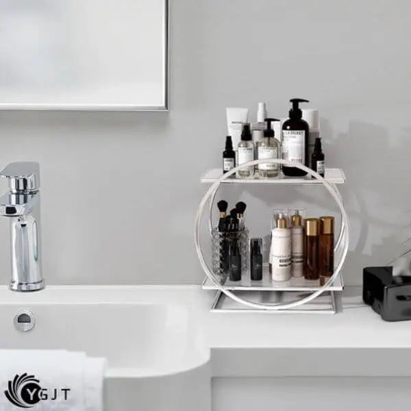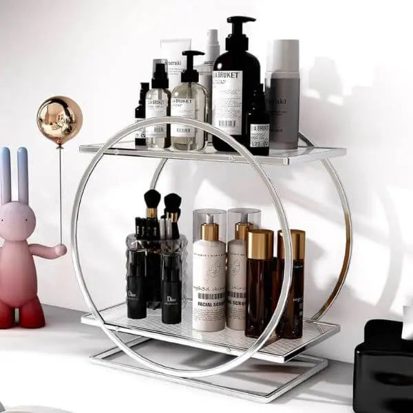 Stylish Double-Tier Design: Two spacious levels allow for efficient storage of skincare, perfumes, cosmetics, toiletries, and more.