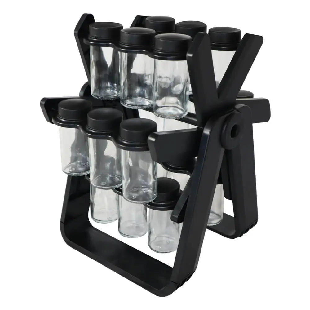 Space-Saving Design: Vertical tower design saves precious counter space while storing a large variety of spices.
