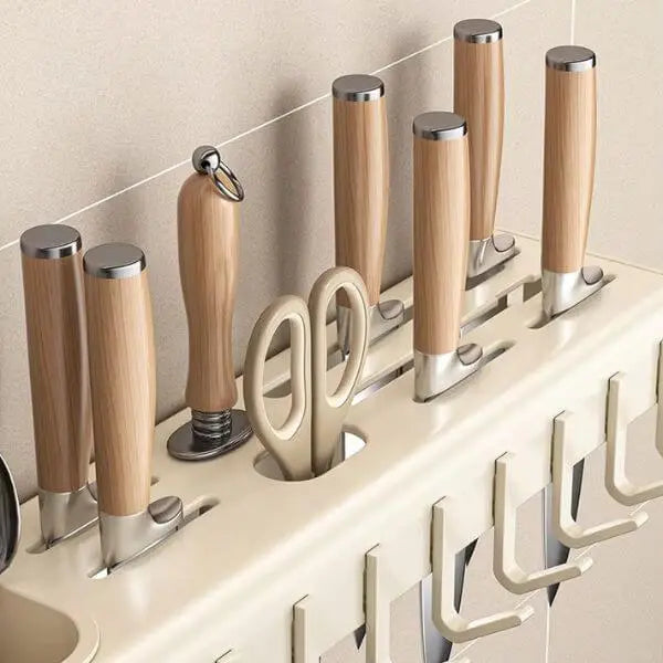 Multi-Functional Storage: Includes hooks, compartments, and shelves for a wide variety of kitchen tools and cutlery