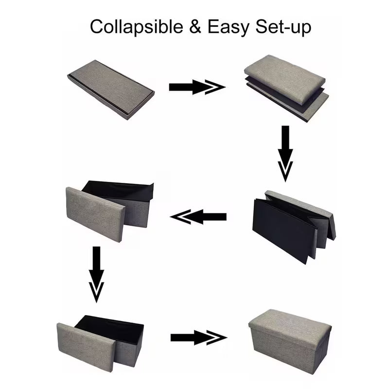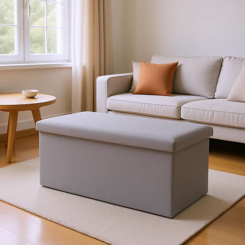 Maximize your space with this versatile 76.2 cm Ottoman Storage Bench, engineered to handle up to 299.37 kg. Featuring a breathable linen-look fabric in elegant light gray, this folding chest transforms any room into an organized haven. Use it as a functional foot rest, extra seating, or hidden storage solution—perfect for entryways, living rooms, and bedrooms. The generous 79.49 L capacity keeps clutter out of sight while maintaining your décor's aesthetic appeal. Fold it away when not needed for effortless space management. Invest in smart storage that works as hard as you do.