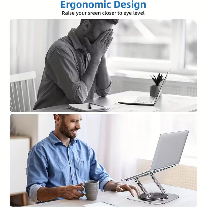 Elevate your workspace with our Adjustable Laptop Stand featuring 360-degree rotation. Designed for maximum flexibility, this stand positions your screen at the perfect viewing angle to reduce neck and back strain during long work sessions. The smooth rotating mechanism lets you pivot your laptop effortlessly, making it ideal for presentations, video calls, or collaborative work. Built with sturdy construction, it accommodates most laptop sizes while keeping your desk organized and clutter-free. Transform your productivity and comfort—invest in ergonomic excellence today.