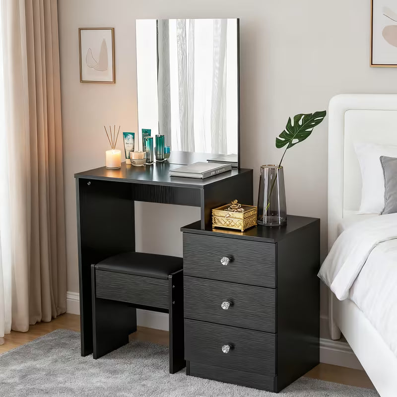 Transform your bedroom into a sophisticated beauty sanctuary with this elegant dressing table set. Featuring a spacious mirror, comfortable stool, and multiple drawers, it provides the perfect dedicated space for your daily beauty routine. The modern design complements any bedroom décor while offering practical storage solutions for all your cosmetics and accessories. Organize your essentials within easy reach, creating a clutter-free vanity experience. Ideal for makeup application, skincare routines, and personal grooming, this versatile piece combines style with functionality. Elevate your self-care ritual with a vanity that's as beautiful as it is practical.