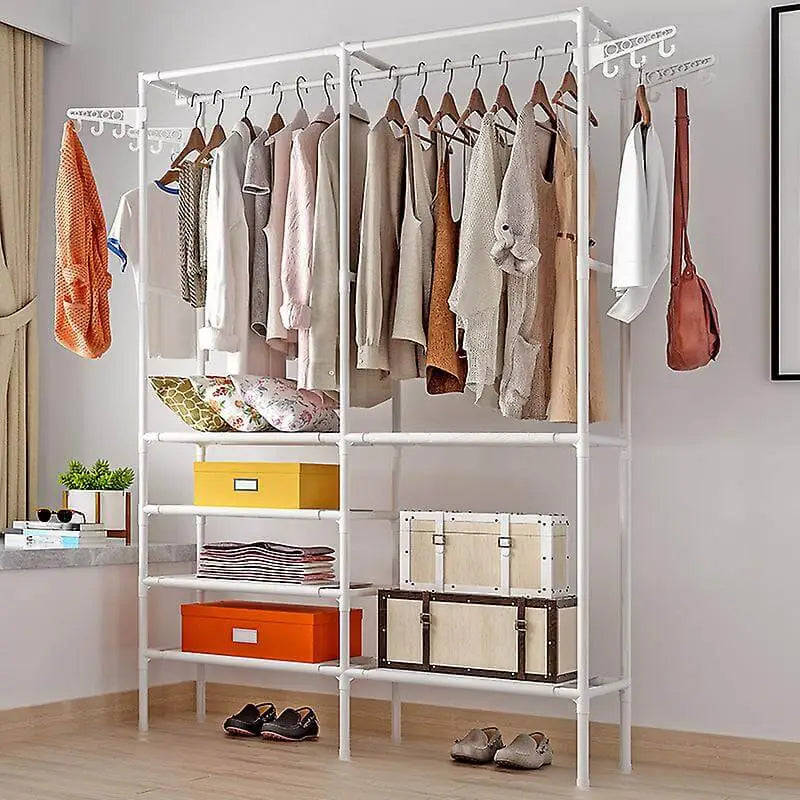 This Heavy Duty Wardrobe Organizer for Clothes and Shoes is a versatile piece of furniture that combines a coat hanger, storage rack, and hanging rail, offering ample space to organize clothes, shoes, umbrellas, hats, and bags in your entryway, bedroom, office, and more. With its 3-in-1 design, it optimizes space while keeping your room tidy and organized. Crafted from high-quality materials, it boasts strength, stability, and durability. Simple installation ensures quick setup, enhancing the functionality of your space.