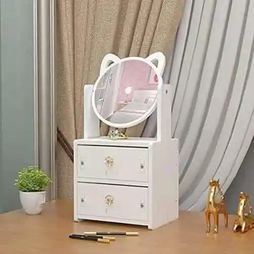 - Versatile Storage: Multiple compartments and drawers to neatly organize cosmetics and skincare products.