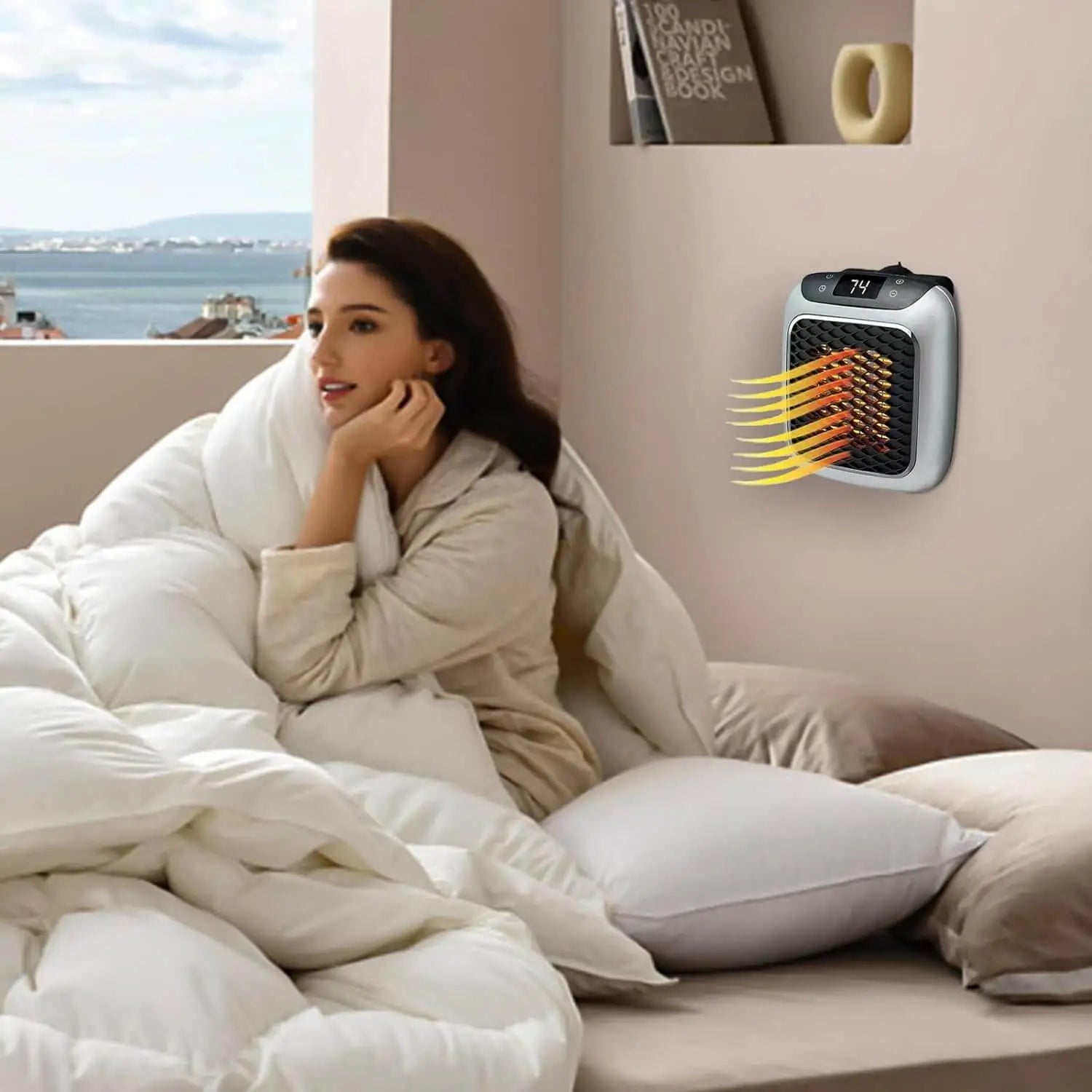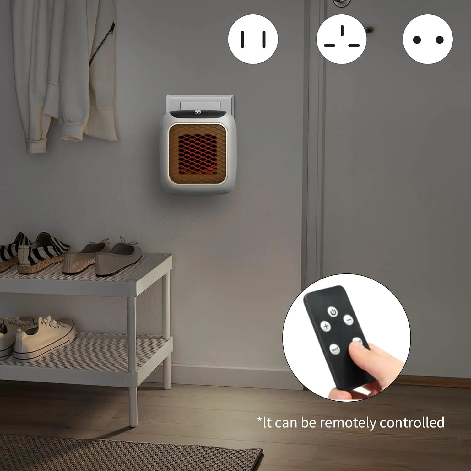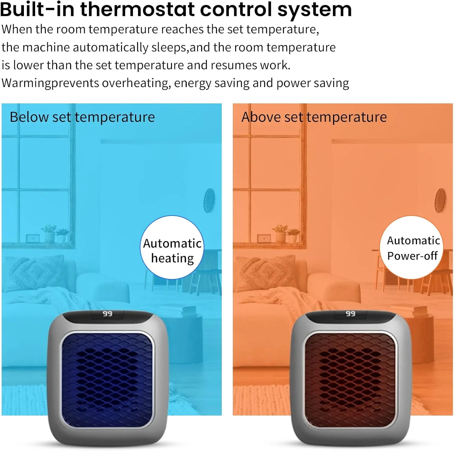 The Portable Fan Heater With Adjustable Thermostat and Timer is a compact and efficient solution for warming up small spaces quickly and effectively. With its mini size and wall socket design, it’s ideal for travel or use in various rooms around the house. This heater utilizes advanced ceramic heating technology to convert cold air into warm, soothing heat while retaining moisture in the air to prevent dryness. It features a digital LED display with adjustable thermostat settings and a convenient timer for precise control over temperature and operation time.