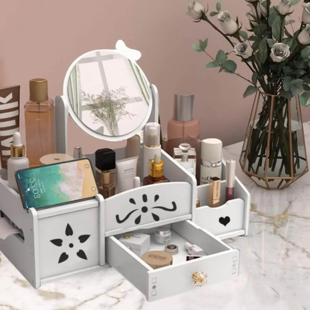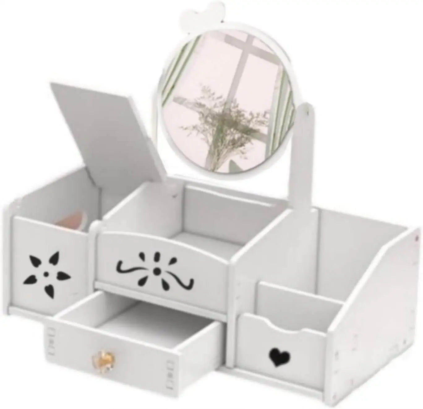 - Multifunctional Design: Comes with drawers, dividers, and a built-in tissue box for storing cosmetics, jewelry, and other accessories.