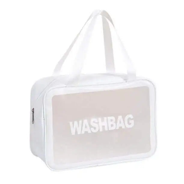 Made from high-quality, waterproof materials with a semi-transparent frosted finish, the bag combines functionality with a modern aesthetic. Its compact yet spacious design makes it easy to carry and store while still accommodating everything from skincare products to shaving kits and cosmetics.