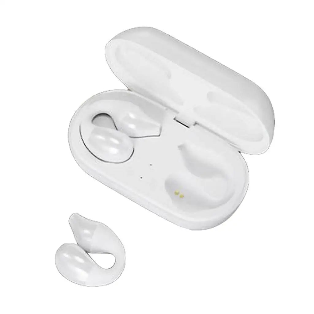 Description: These Wireless Bluetooth Earphones are designed with an innovative semi-in-ear style, featuring bone conduction technology that allows for long-term wear without discomfort. The earphones come with a sleek and modern design, available in classic black and white options, making them a stylish accessory for any occasion.